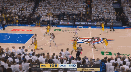6月6日讯 NBA总决赛G1,步行者在客场以111-110险胜雷霆。